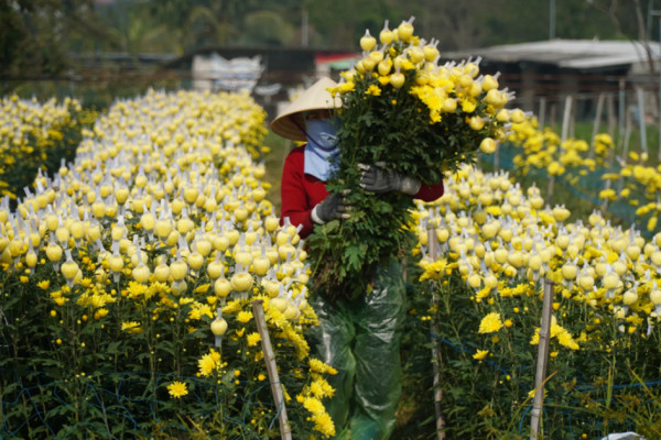 Những ngày cận Tết, người nông dân Đông Cương bước vào giai đoạn quan trọng nhất của vụ hoa. Công việc chăm sóc diễn ra liên tục từ sáng sớm đến tối muộn, bao gồm tưới nước, tỉa lá, bấm nụ, che lưới và thắp đèn để điều chỉnh thời điểm nở. Với người trồng hoa nơi đây, mỗi vụ Tết không chỉ quyết định thu nhập cả năm, mà còn thể hiện kinh nghiệm, sự cần cù và trách nhiệm với nghề đã gắn bó qua nhiều thế hệ.