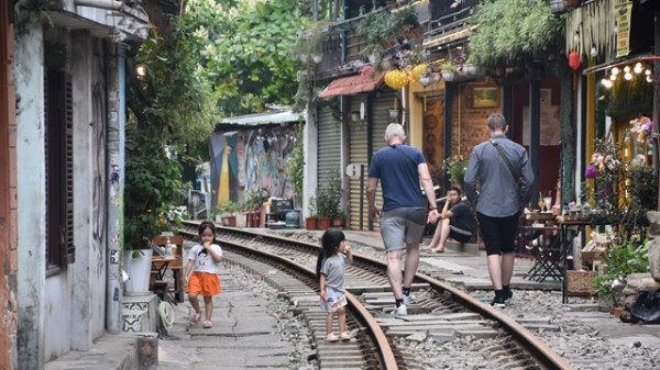 [ẢNH] Khách Tây trầm trồ với trải nghiệm 'cà phê đường tàu' Hà Nội