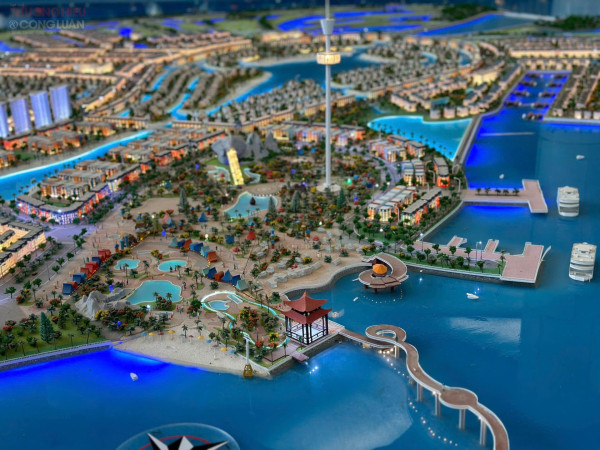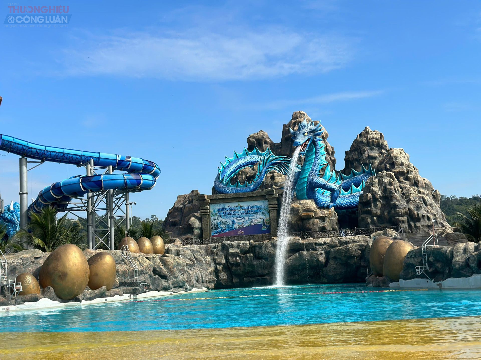 Đặc biệt, toàn bộ cát trắng đều chuyển trực tiếp từ Nha Trang, nước biển được làm sạch với công nghệ trạm lọc Setfil hiện đại (máy chạy liên tục công suất 20.000m3 mỗi đêm) tạo ra màu nước rất trong xanh, không còn rong rêu hay phù sa, đồng thời vẫn giữ trọn vẹn đặc tính của nước biển tự nhiên, khoáng chất an toàn cho sức khoẻ của du khách. Trên bãi biển, những hàng dừa xanh rợp bóng, ghế tắm nắng trải dài thoải mái cho du khách chụp ảnh hoặc thư giãn ngắm khung cảnh thơ mộng.