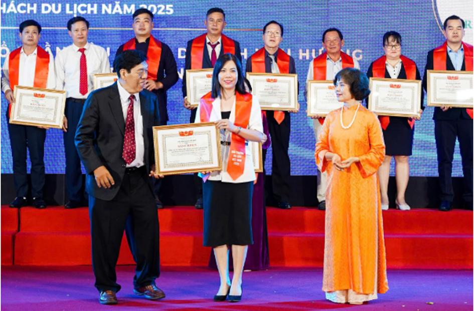 Đại diện Khu du lịch Quốc tế Đồi Rồng đón nhận danh hiệu “Khu, điểm du lịch tiêu biểu đón nhiều khách du lịch năm 2025” do Hiệp hội Du lịch Việt Nam trao tặng ngày 10/4/2026.