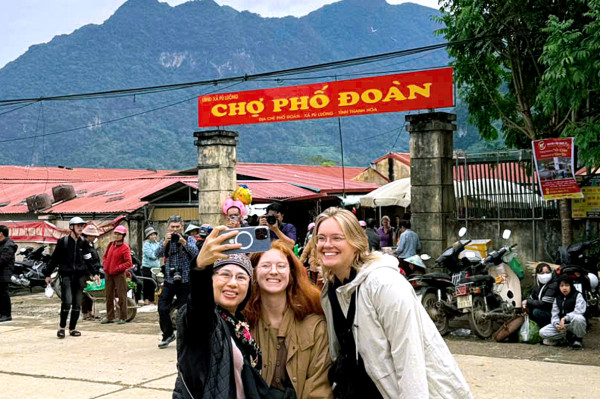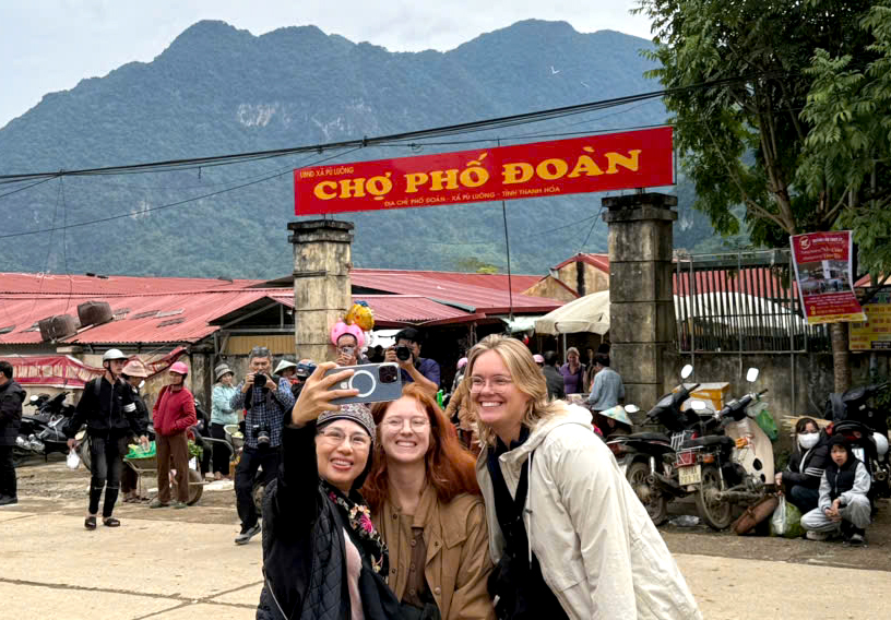 Rời Bá Thước, các học viên K22 di chuyển đến Pù Luông thưởng ngoạn cảnh bình minh nơi mây ôm ấp núi, tran hòa nhịp sống bên những thửa ruộng bậc thang. Ở Pù Luông, thú nhất là phiên chợ vào sáng thứ năm và sáng chủ nhật mỗi tuần. Chợ Phố Đoàn nằm trên đất Mường Khoòng giữa núi rừng hùng vĩ của khu bảo tồn thiên nhiên Pù Luông, đồng bào các dân tộc thường mang các sản vật, sản phẩm địa phương đến bán. Ngày nay, khi các chợ vùng cao hầu như đang chuyển dịch các mặt hàng thì Chợ Phố Đoàn lại đang gìn giữ được những nét văn hóa đặc trưng của cộng đồng người dân tộc thiểu số ở vùng núi miền Tây Thanh Hóa nên có rất nhiều du khách nước ngoài đến sinh hoạt cùng bà con dân tộc Thái, Mường mỗi phiên khiến ai đến phiên chợ nơi đây cũng thấy nét hòa nhập, giao lưu văn hóa thuần khiết giữa du khách quốc tế và đồng bào ta.