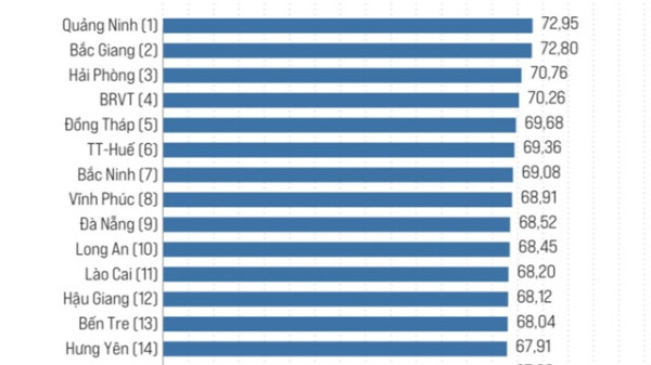 Quảng Ninh tiếp tục dẫn đầu Bảng xếp hạng chỉ số PCI năm 2022 với 72,95 điểm. 4 địa phương khác nằm trong top 5 của Bảng xếp hạng chỉ số PCI năm 2022 là Bắc Giang đứng thứ 2 với 72,80 điểm; Hải Phòng đứng thứ 3 với 70,76 điểm; Bà Rịa Vũng Tàu đứng thứ 4 với 70,26 điểm và Đồng Tháp đứng thứ 5 với 69,68 điểm.