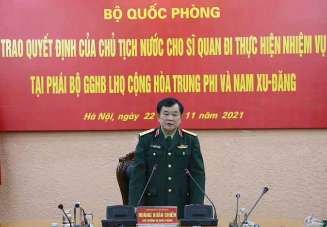 Phát biểu chỉ đạo và giao nhiệm vụ cho 12 sĩ quan, Thượng tướng Hoàng Xuân Chiến yêu cầu các sĩ quan sắp lên đường nhận nhiệm vụ cần quán triệt và thực hiện nghiêm quan điểm đường lối đối ngoại của Đảng, Nhà nước và Quân đội; chấp hành nghiêm kỷ luật của quân đội, quy định của Liên Hợp Quốc tại Phái bộ và pháp luật nước sở tại; thực hiện tốt chức trách, nhiệm vụ, qua đó khẳng định trình độ năng lực của sĩ quan Quân đội nhân dân Việt Nam, góp phần thúc đẩy các hoạt động Gìn giữ hòa bình Liên Hợp Quốc của Quân đội nhân dân Việt Nam ngày càng chuyên nghiệp, hiệu quả.