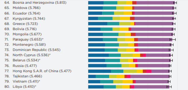 "Một điều đáng ngạc nhiên là chỉ số phúc lợi trung bình không giảm. Con số này được tính toán dựa trên đánh giá của người dân về cuộc sống của chính mình", John Helliwell, Giáo sư Đại học British Columbia, Canada, nói. "Có thể lý giải rằng mọi người xem dịch bệnh COVID-19 là mối đe dọa chung từ bên ngoài và nó khiến họ đoàn kết hơn, có cảm giác đồng cam cộng khổ với người khác nhiều hơn".