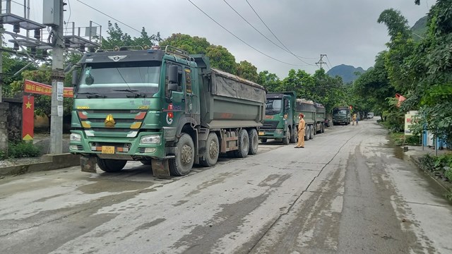 Nhiều xe tải hoạt động gây bụi bặm, rơi vãi đất đá ra đường dân sinh tại thôn Hồng Sơn, xã Thanh Sơn, huyện Kim Bảng (tỉnh Hà Nam) đã bị lực lượng CSGT huyện Kim Bảng kiểm tra, lập biên bản phạt sau phản ánh của Báo Đại Đoàn Kết.