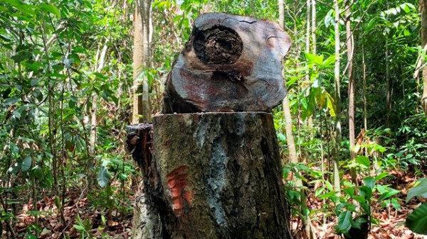 Hàng chục cây dầu rái cổ thụ bị đốn hạ