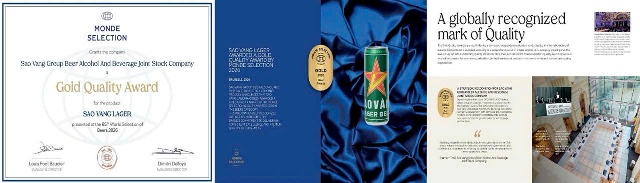 Sản phẩm Bia Sao Vàng Lager của Công ty Cổ phần Tập đoàn Bia rượu và Nước giải khát Sao Vàng (SAVABECO) vừa được trao Giải Vàng chất lượng (Gold Quality Award) tại Monde Selection 2026 tổ chức ở Brussels (Bỉ). Đây là một trong những giải thưởng uy tín trên thế giới trong lĩnh vực đánh giá chất lượng sản phẩm tiêu dùng.