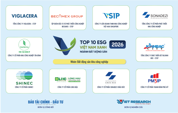 Tại Lễ công bố các doanh nghiệp phát triển bền vững năm 2026 do Viet Research phối hợp với Báo Tài chính - Đầu tư (Bộ Tài chính) tổ chức, Tổng Công ty Viglacera tiếp tục khẳng định vị thế tiên phong chuyển đổi xanh khi được vinh danh tại 3 hạng mục quan trọng thuộc hệ thống giải thưởng ESG Việt Nam Xanh 2026 (ESG10).