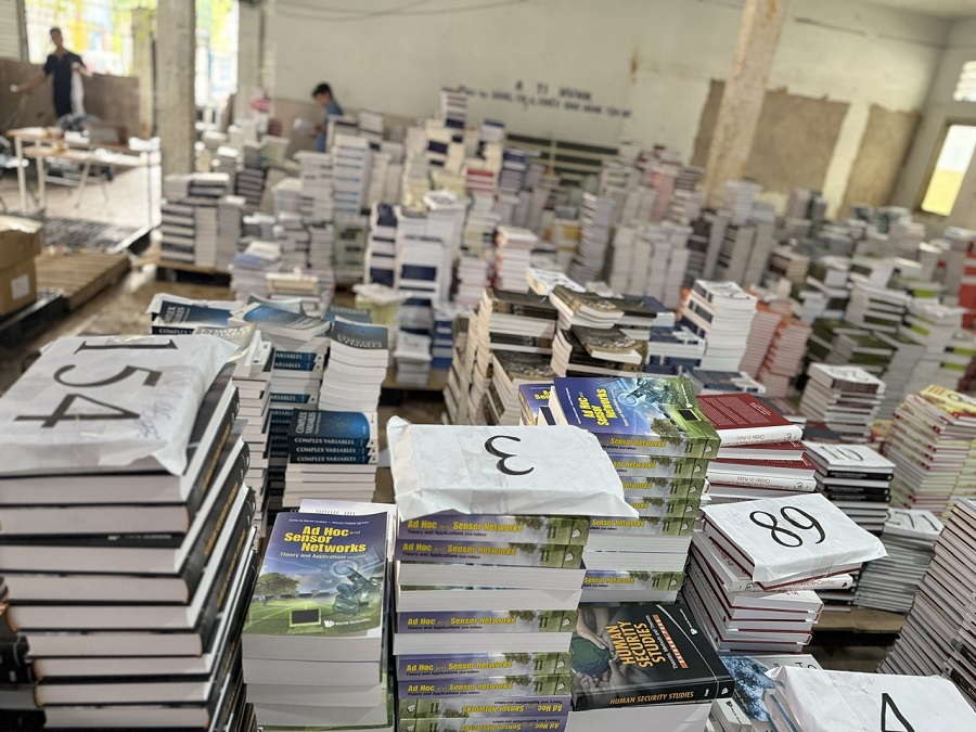 Các Trường Đại học tới tận kho sách nhận sách (Ảnh: L.T)